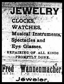 Fred Wannenmacher’s (b.1858) Jewelry Store Advertisement